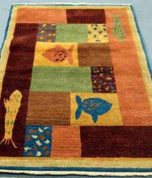 AMBER RUG WITH ACCENTS IN BLUE