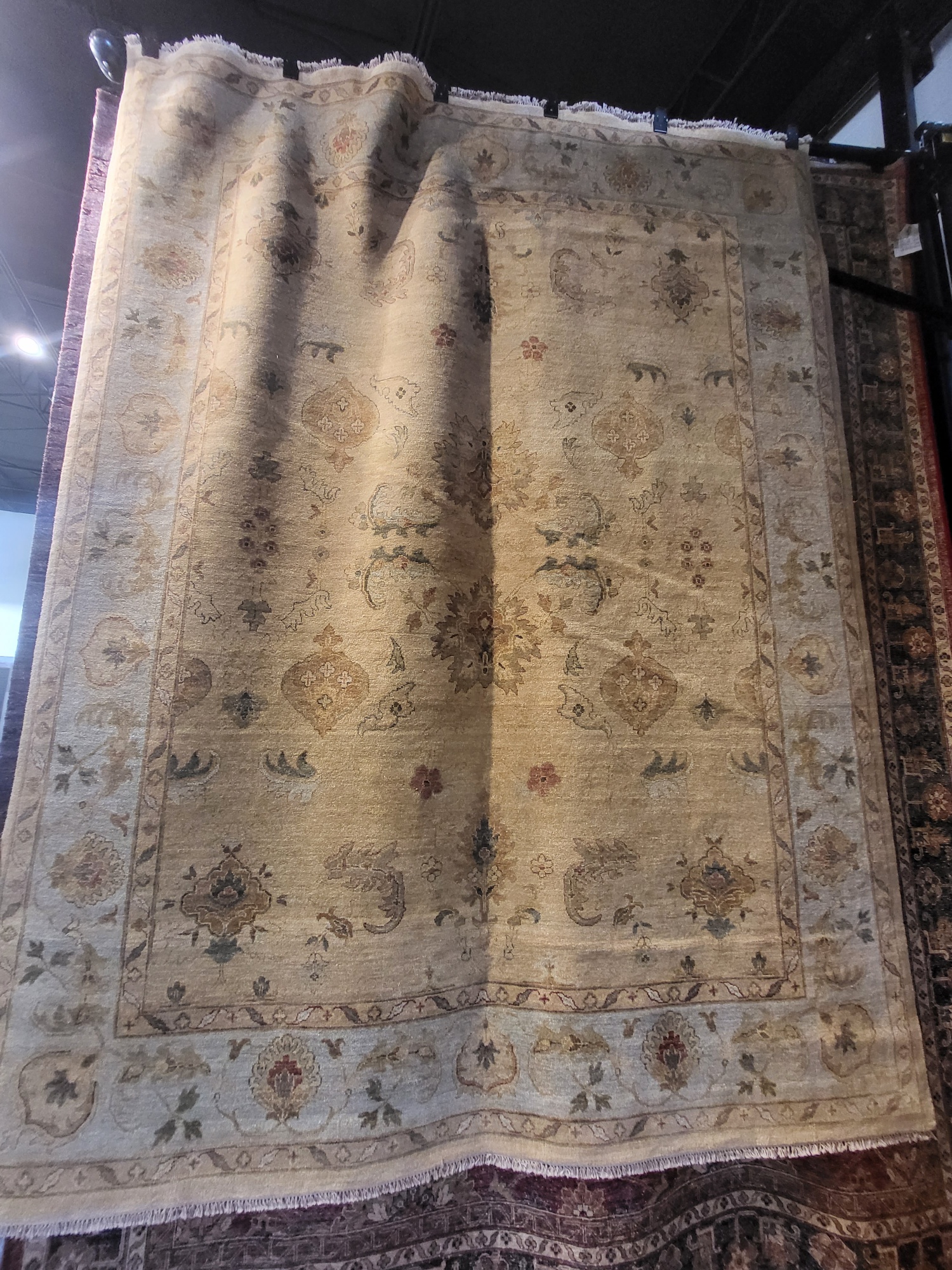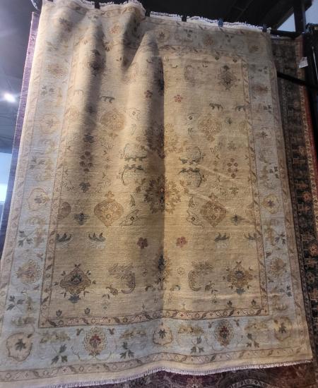 Size: 8' x 10' ID: AD511 Style Traditional Shape Rectangle Color Blue, Brown / Tan Yarn Wool Quality Hand Knotted Bge/Lt Blue - 8X10'4 Designer net $4132 Close-out price $2000